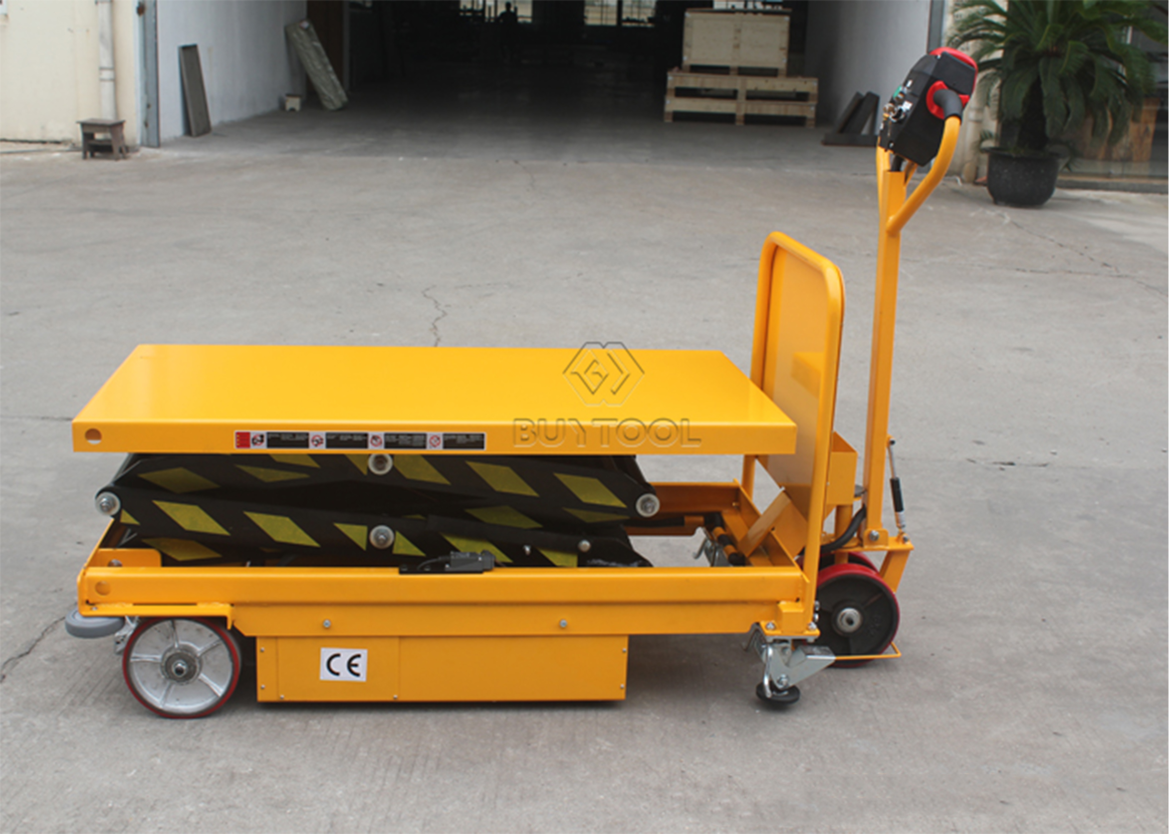 This series full electric lift table is self-propelled and electric lifting, Emergency reverse button for maximum safety in emergency situations. Uniquely designed tool storage box helps store tools.